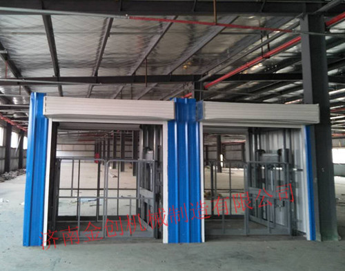 液壓升降貨梯廠家-濟南金創升降機械公司,生產的升高6米,載重3噸,彩鋼板外封結構導軌鏈條式液壓升降貨梯在天津安裝完成.